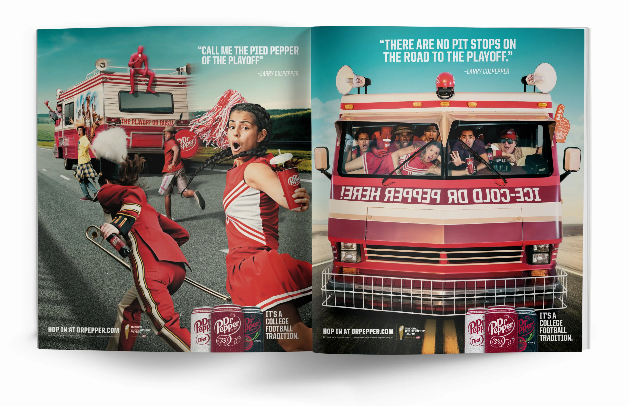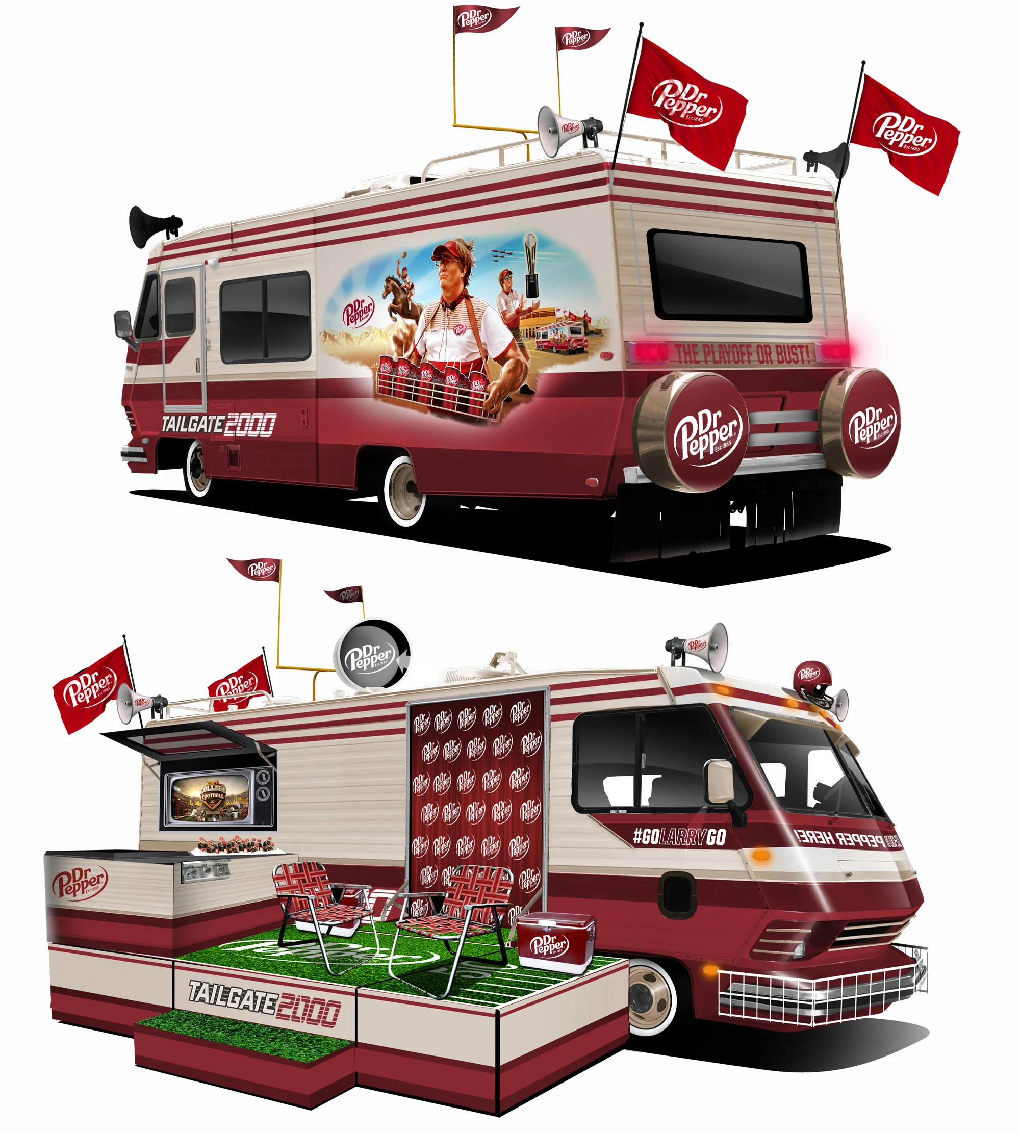 In conjunction with West Coast customs we designed and built a functioning Tailgate 2000 and sent Larry on a tour across America to visit with fans, give out free Dr Pepper and deliver the National Championship trophy to the big game.